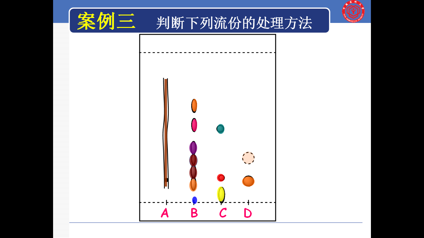 3.某样品经硅胶色谱柱洗脱,得到的洗脱液中,请判断馏份A-D的后续处理方法。