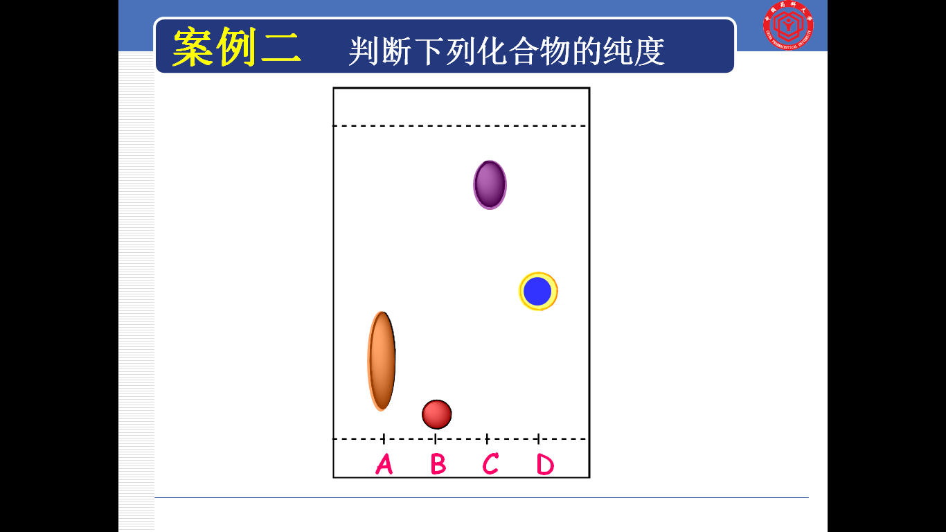 2. 请根据下边的TLC薄层色谱结果,判断各组分的纯度。