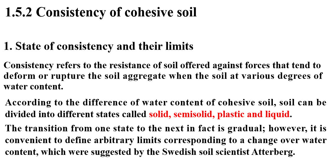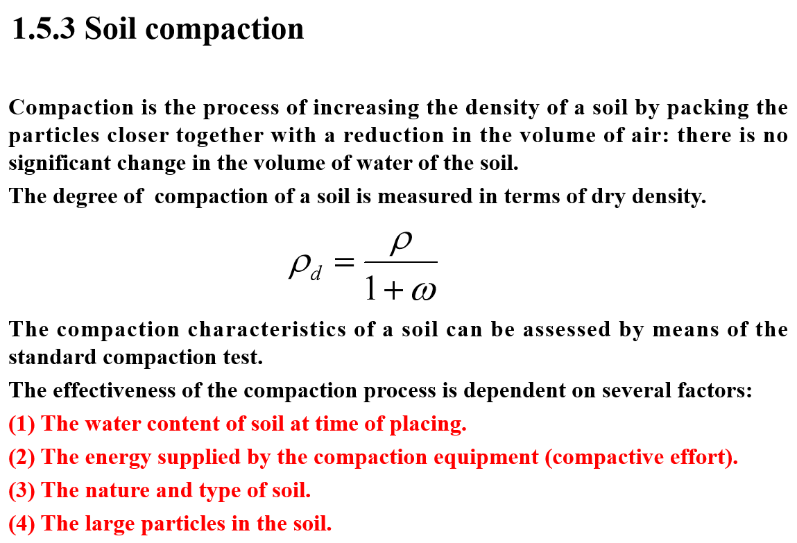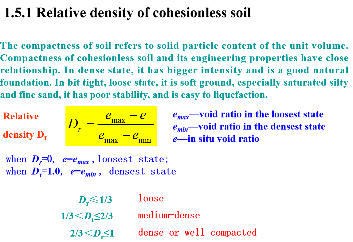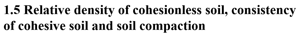 1.5 Relative density of cohesionless soil, consistency of soil and soil compaction