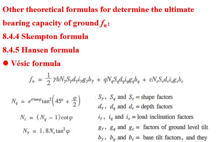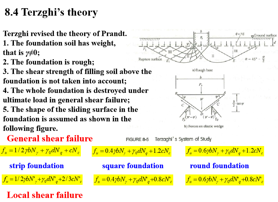 8.4 Terzaghi’s Soil Bearing Capacity Formulas