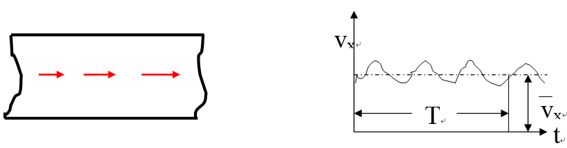 瞬时速度vx随时间τ的变化。其值虽然不断变化,但在一足够长的时间段T内,流速vx总是围绕着某一平均值上下波动。