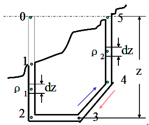 为了简化计算,一般采用测算出0-1-2和5-4-3井巷中空气密度的平均值ρm1和ρm2,用其分别代替上式的ρ1和ρ2,则上式可写为: