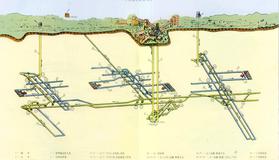 对于紊流运动,λ=f (Re,ε/r),关系比较复杂。用当量直径de=4S/U代替d,代入阻力通式,则得到紊流状态下井巷的摩擦阻力计算式: