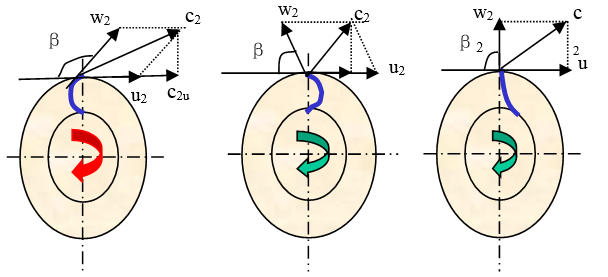 叶片出口构造角:风流相对速度的方向与圆周速度u2的反方向夹角称为叶片出口构造角,以