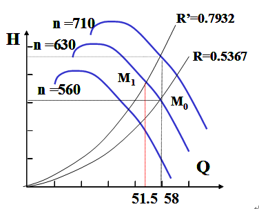 ,矿风量减小不能满足生产要求,拟采用调整转速方法保持风量Q=58