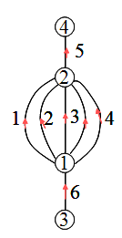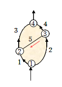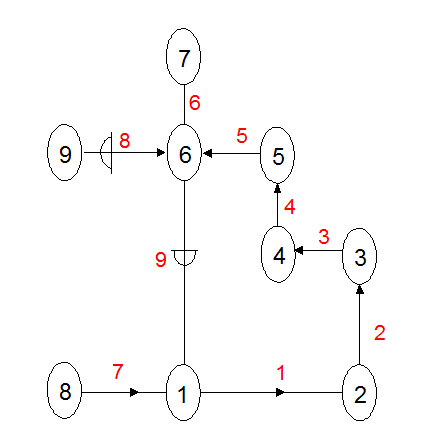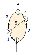 角联分支(对角分支):是指位于风网的任意两条有向通路之间、且不与两通路的公共节点相连的分支,如图。