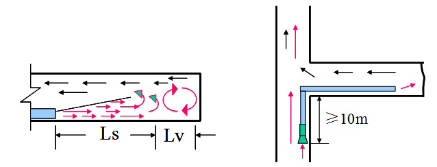 --从风筒出口至射流反向的最远距离(即扩张段和收缩段总长)称射流有效射程。