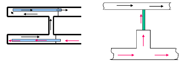 2.平行巷道导风 在掘进主巷的同时,在附近与其平行掘一条配风巷,每隔一定距离在主、配巷间开掘联络巷,形成贯穿风流,当新的联络巷沟通后,旧联络巷即封闭。两条平行巷道的独头部分可用风幛或风筒导风,巷道的其余部分用主巷进风,配巷回风。