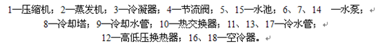 它将制冷站设置在地面,冷凝热也在地面排放,而在井下设置高低压换热器将一次高压冷冻水转换成二次低压冷冻水,最后在用风地点上用空冷器冷却风流。其结构如图8-5-2所示。