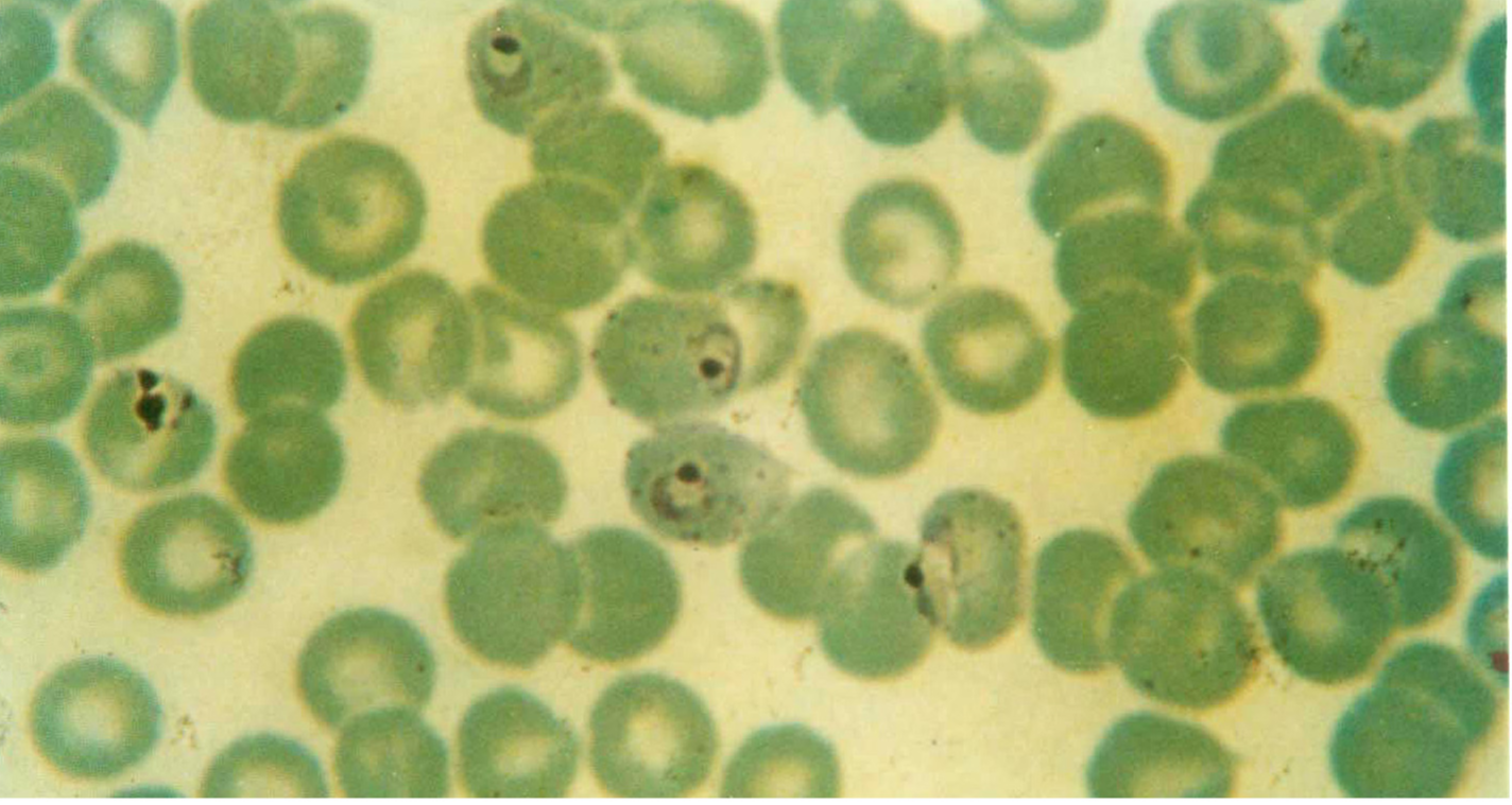 被寄生的红细胞,从晚期滋养体之后,即开始胀大,色变淡,且出现红色薛氏小点。