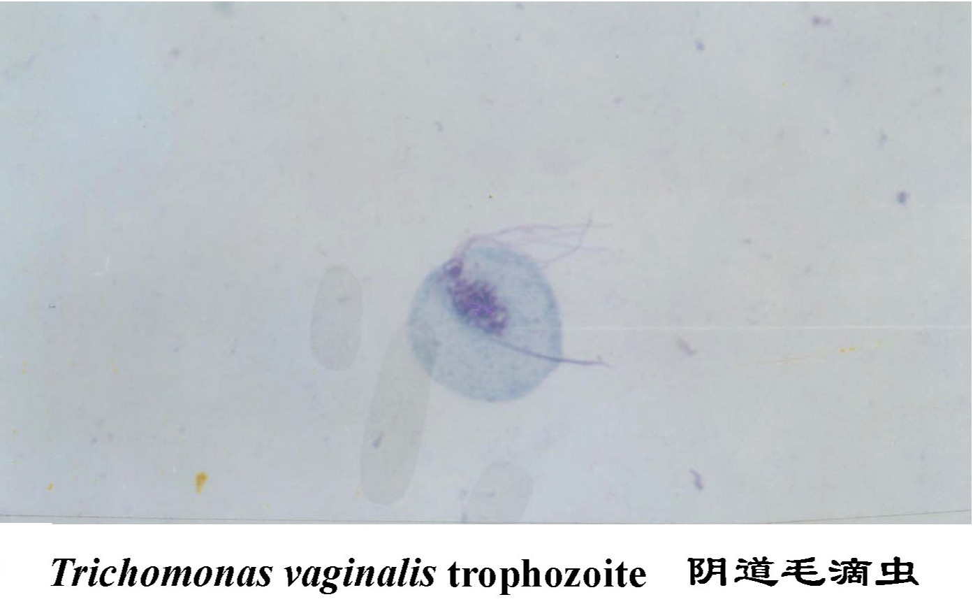 阴道毛滴虫发育过程中仅有滋养体期。活体无色透明,体态多变,活动力强。染色后呈椭圆形或梨形,体长可达30μm,宽10~15μm。体前有4根鞭毛,后端有1根。体外侧有1波动膜。有椭圆形泡状细胞核1个。