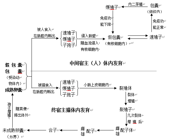 (2)包囊 呈圆形或椭圆形,直径为5~100μm,具有一层富有弹性的坚韧囊壁。内含数个至数百个缓殖子。
