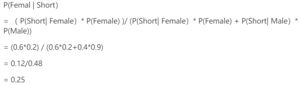 当观察到一个人留着短发时,请问这个人有多大的可能性为女生。在这个例子中,我们所观察到的统计信息为先验知识,所要解决的问题是,如何根据先验,求解后验知识。以下为求解过程,根据贝叶斯规则,我们可以推断,这个人为女生的概率为0.25。