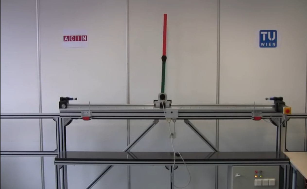 下面,我们通过“倒立摆控制系统”设计案例,来感受机器学习中的强化学习。“倒立摆控制系统”是一个复杂的、不稳定的、非线性系统。通常,它可以作为进行控制算法验证的理想实验平台。例如,通过对倒立摆的控制,可以较好检验新的控制方法是否有较强的,处理非线性和不稳定性问题的能力。如下图所示的倒立摆,它包含两个铰链,一个与小车相连,一个为两个连杆的交汇处。输入为小车的力,输出为小车的位置,铰链的速度、角速度和角加速度;这些变量之间的关系,可以通过倒立摆的动力学方程来表示。