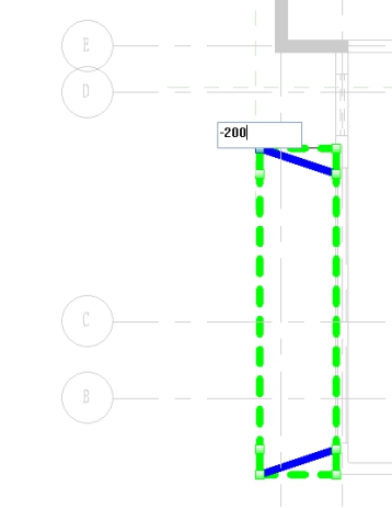 ,如图 7.8-27  分别单击楼板边界 4 个点,出现兰色临时相对               高程值(默认为 0),单击文字输入“-200”后按“Enter”键。