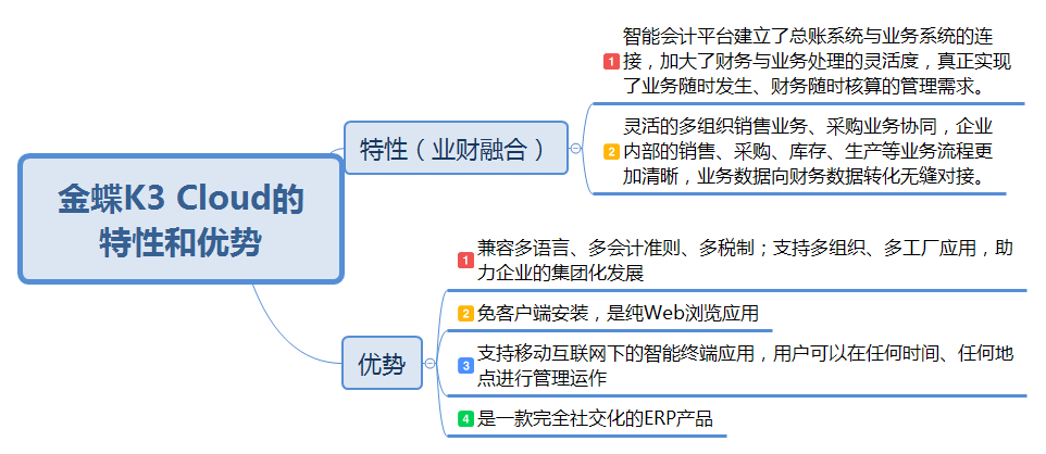 2、能够用自己的语言总结出新型企业管理软件金蝶K3 Cloud ERP系统的特点和优势;