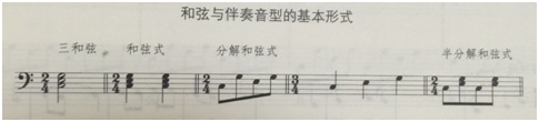 半分解和弦式伴奏音型是伴奏音型以和弦的低音与另外几个和弦音交替出现的一种形式。在即兴伴奏中,最常用的是以八分音符为单位进行弹奏,其特点为欢快跳跃。