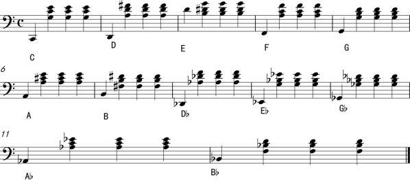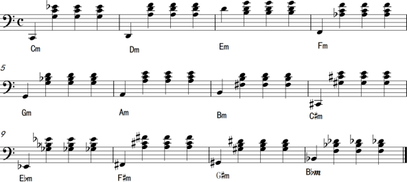 柱式和弦:适合表现比较安稳平静或者坚定有力、气势磅礴、庄严宏伟的情绪特点。