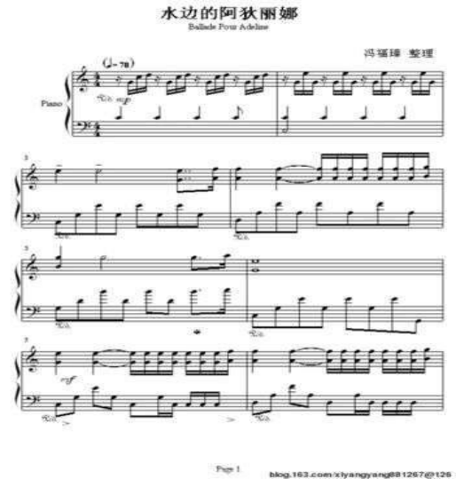请听谱例《水边的阿蒂丽娜》,注意其中所用的副三和弦II级,替换了原有的IV级,使得原来大三和弦的明亮色彩变为比较柔和的小三和弦,从未加强了和声的抒情效果。