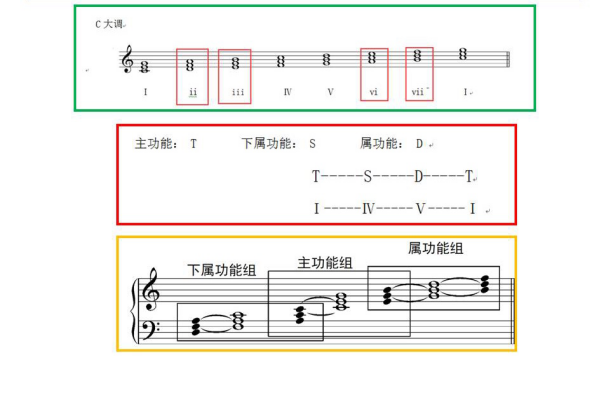 各级副三和弦由于其不同的结构(大、小、增、减),以及与正三和弦所具有的共同音的关系,使得他们分别隶属于正三和弦的三个功能。