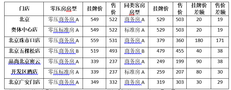 表1 锦江之星部分门店“零压房”与同类房型价格(2019.11.4-2019.11.6)单位:元/间天