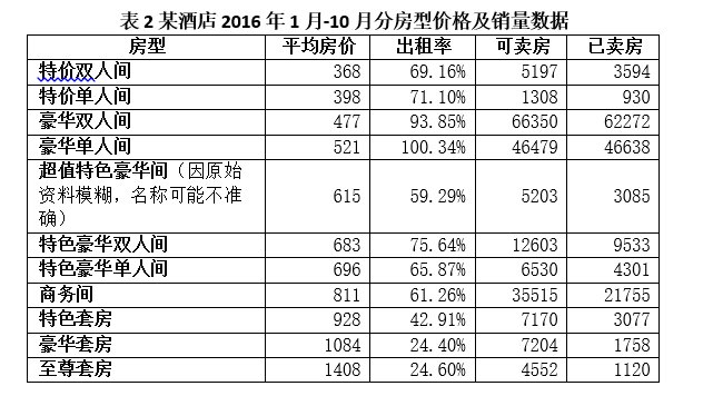(1)根据上述图表的数据,概述该酒店各房型销售的基本情况及特点;