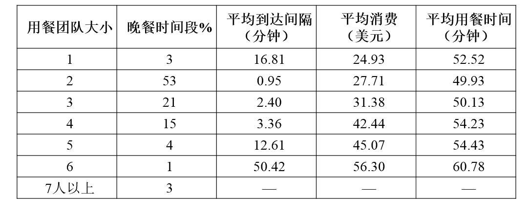顾客用餐情况记录如下表所示,请问该如何对该餐厅的座位进行优化?