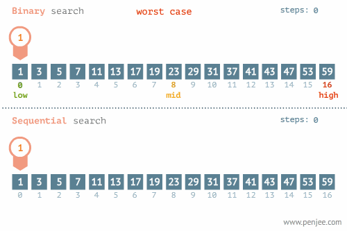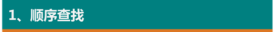 顺序查找是人们最熟悉的查找策略,对于小规模的数据,顺序查找是个不错的选择。顺序查找的方法是从数据的第一个元素开始,依次比较,直到找到目标数据或查找失败。算法最好情况是第一个元素就是目标数据,最糟糕的情况是最后一个元素才是目标的数据。顺序查找平均关键字匹配次数为表长的一半。