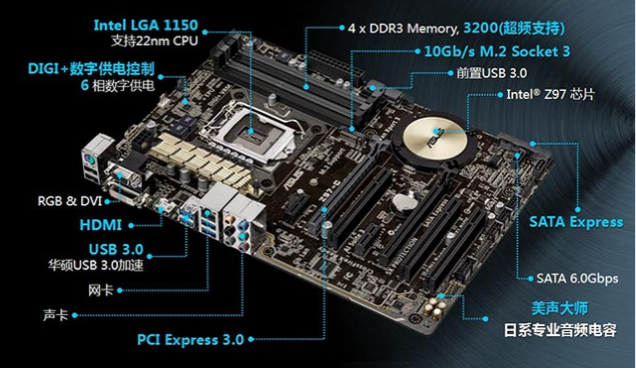 主板实际上是一块集成了各类总线的印刷电路板,并在主板上集成了一些重要的核心部件,如CMOS,BIOS及一些控制芯片组。微型计算机的主板是微型计算机中最关键的物理部件,在主板上一般有中央处理器、内存储器、扩展槽、控制芯片组以及专用集成电路(如CMOS,ROM)等。