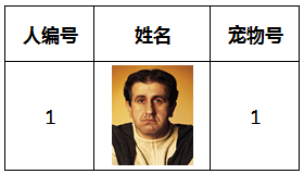 确定索引,人关系中,选定人员编号为主键,宠物号为外键;狗关系中,选定宠物编号为主键。表结构如下(下面的表结构只是形象地说明一下,不是准确的表结构的写法,后面的章节会有标准的写法):