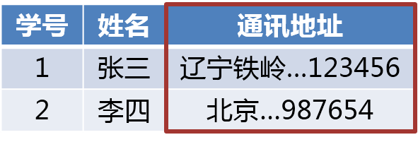 可以将上述表格拆分为两种形式,一种方法是去掉首行,直通到顶,将各分量独立形成列,另一种方法是将各分量进行合并,成为同一个信息。这两种做法都不是很好,会丢失信息。如果需要检索通讯地址,由于第一种方法中,并没有指定从哪一列开始进行检索,故指代不明;第二种方法,虽将信息检索出来,但又苦于信息都在一起,无法明确细节,并非所我们需要的信息。