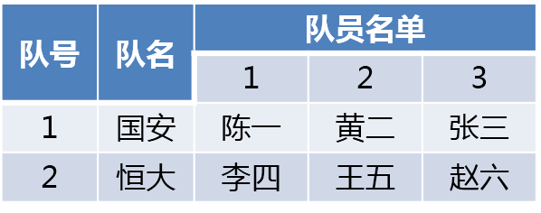 这种方法虽然不丢失信息,但缺看不出隶属关系。什么意思?如何理解?我们换一个明显的例子。现有球员信息表,该表中有表中有表的形式,如下图所示。