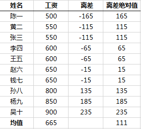 例题2:求下表各数据的离差,看看你是否拖了集体的后腿?