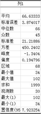 在EXCEL表中,可以用数据分析工具自动生成描述统计信息。如下图示例。