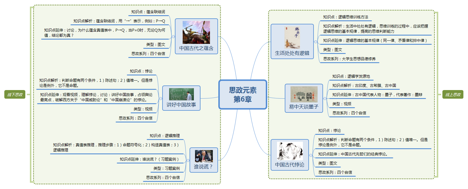 (2)悖论。① 什么是悖论?;② 如何判断悖论?;③ 引申:采用经典悖论案例,模拟思维过程,培养学生逻辑思维。