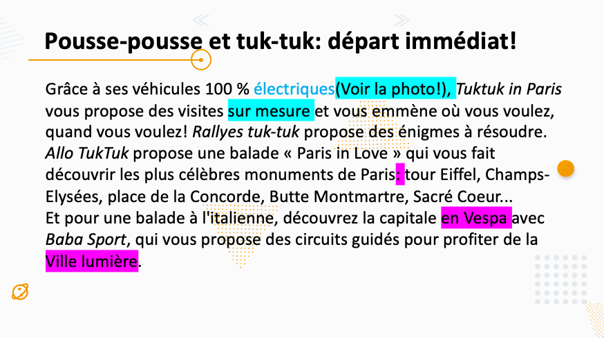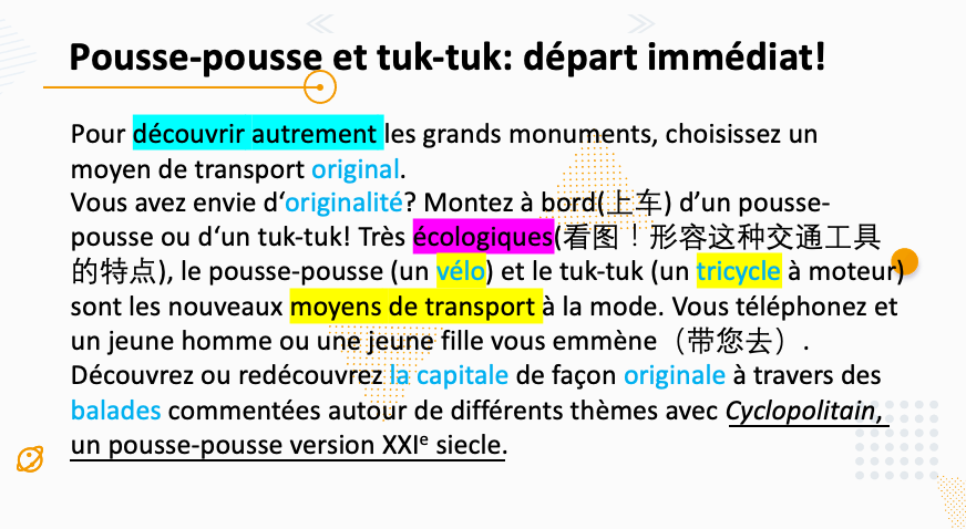 2 从Grâce à 开始后面的内容为什么有斜体字?有何作用?