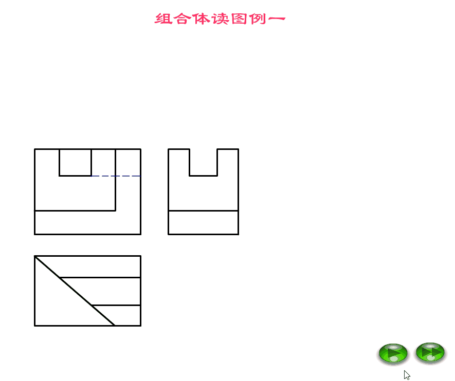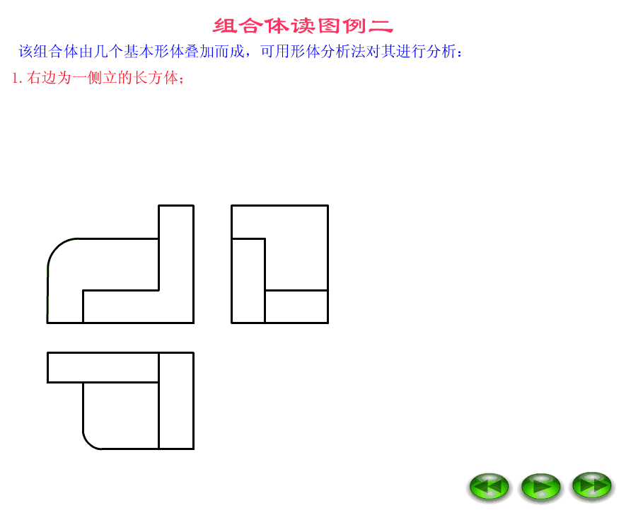 1、学习运用形体分析法,由立体图或模型画组合体三视图。