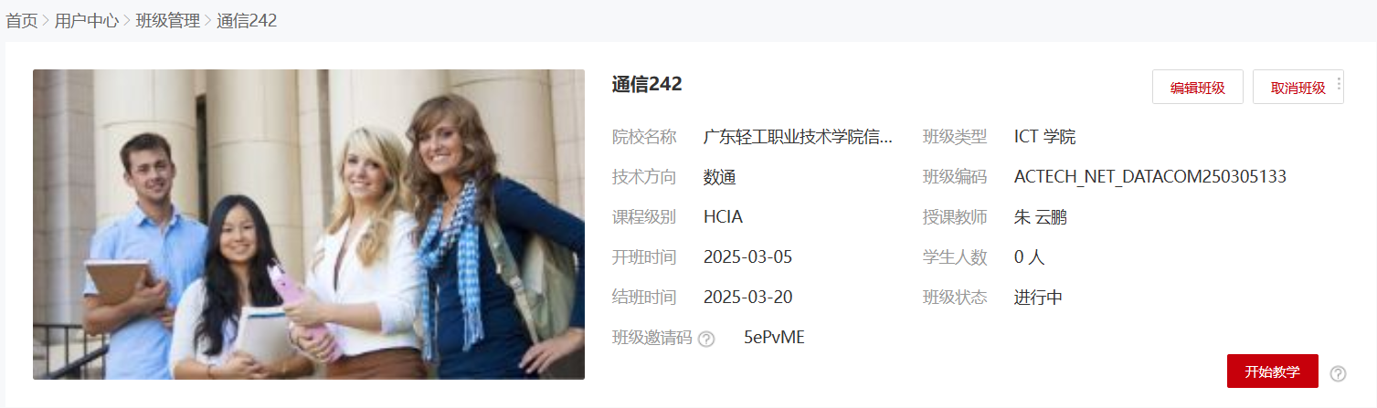 2、在华为官网注册华为账号后,登录华为人才在线平台,在用户中心-我的班级使用班级邀请码(5ePvME)加入下面的该班级学习数通HCIA课程的学习,并参加模拟考试,将考试成绩截图(必须包含自己的姓名和考试成绩,图片名称格式类似于:通信242-23-张三丰)(占5%)