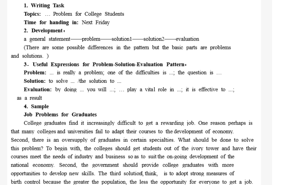 文章剖析了Problem-solution写作模式的构成,并提供了范文与多个写作任务,可参考。