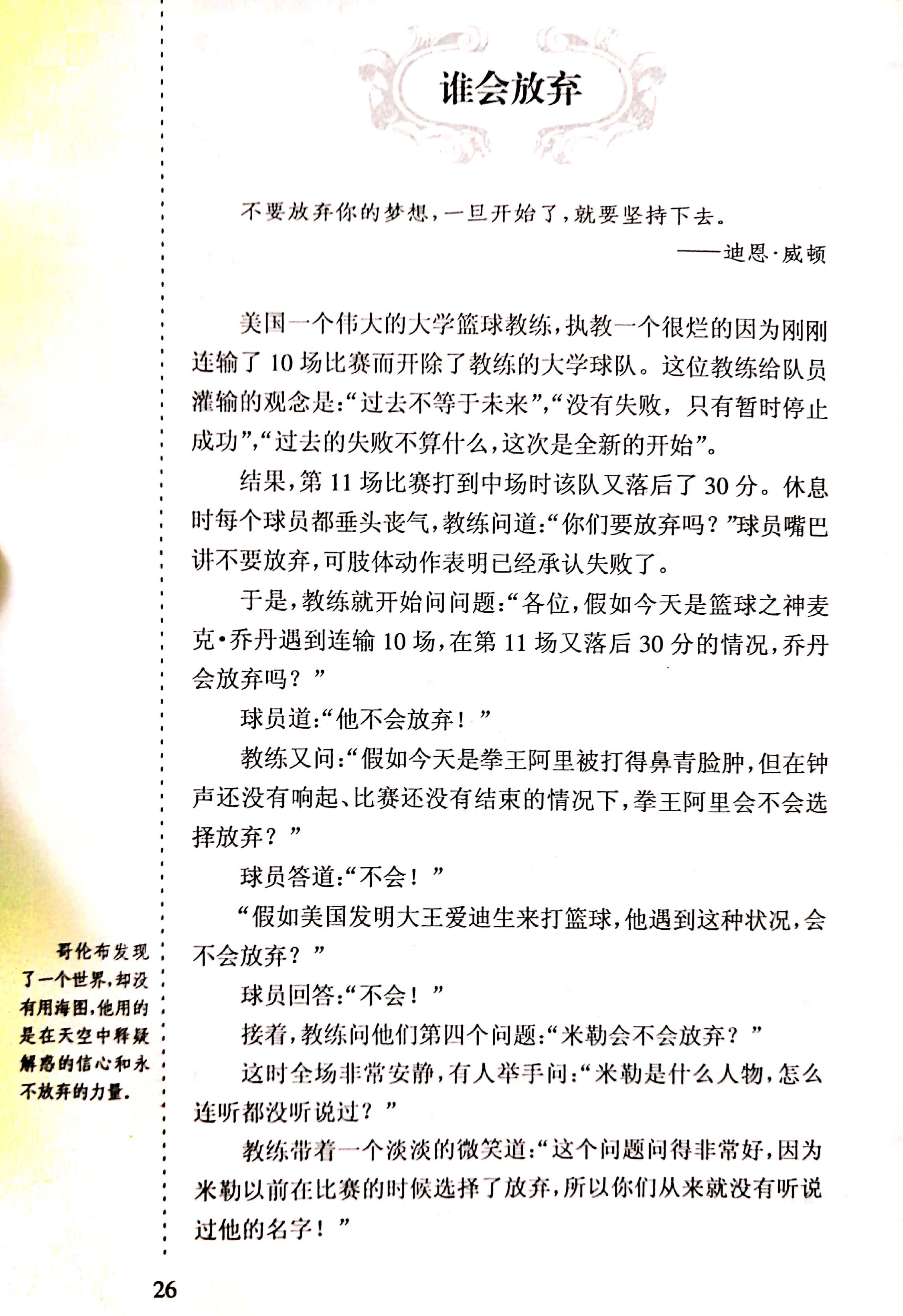 设计意图:坚持,不要放弃,一旦放弃就和成功擦肩而过了。