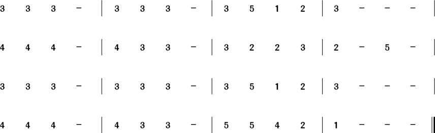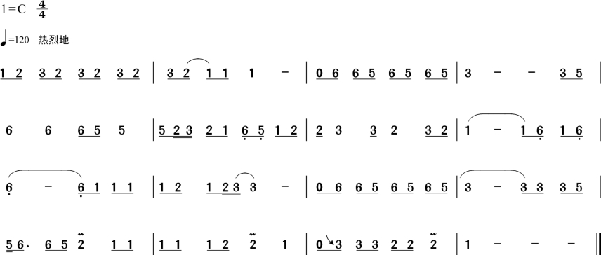 1.运用尤克里里弹奏以下的曲子,巩固对尤克里里的演奏方法和音色特点的认识。