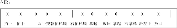 (4)引发思考:刚才练习的杯子游戏中在节奏的清晰度、动作的流畅性、方法的多样化等方面表现如何?如果想进一步完善,你想怎么做?