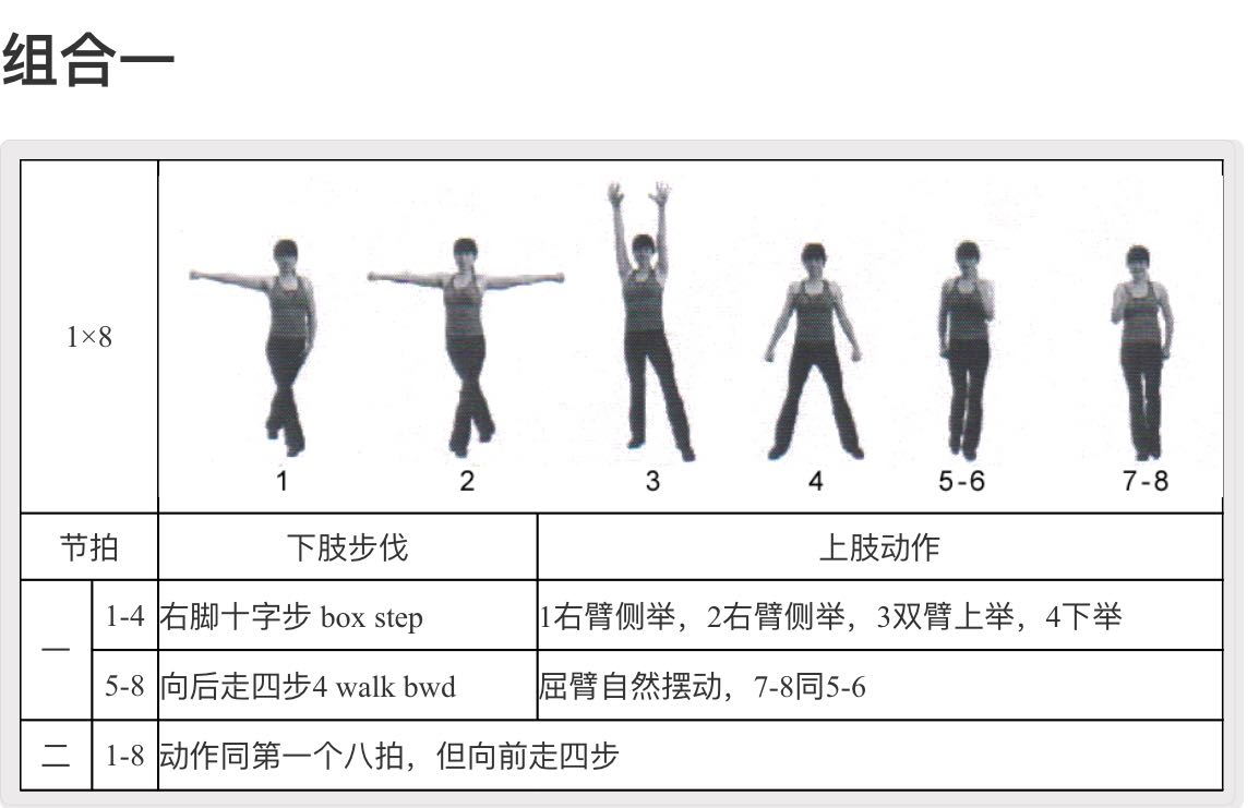 学习大众健美操二级组合一4*8拍动作: