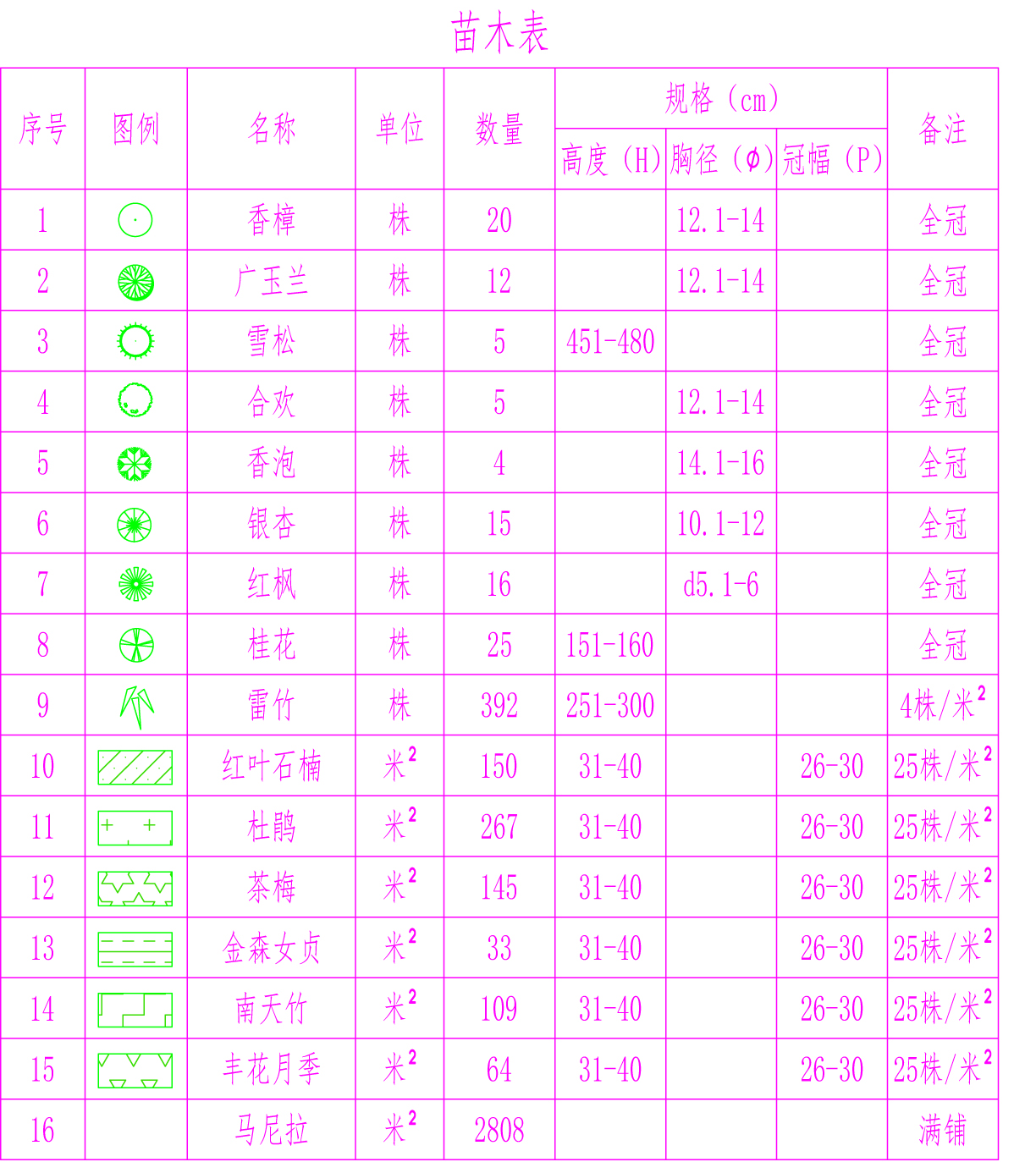 三、实训:为园林总平面图制作苗木表并统计苗木