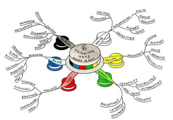 一个人需要考虑某一个任务计划,那么他有两种状况是最不愿面对的,一个是头脑之中的空白,他不知道从何开始,另一个是他头脑的混乱,过多的想法交织在一起造成的淤塞。六顶思考帽可以帮助他设计一个思考提纲,按照一定的次序思考下去。就这个思考工具的实践而言,它会让大多数人感到头脑更加清晰,思维更加敏捷。