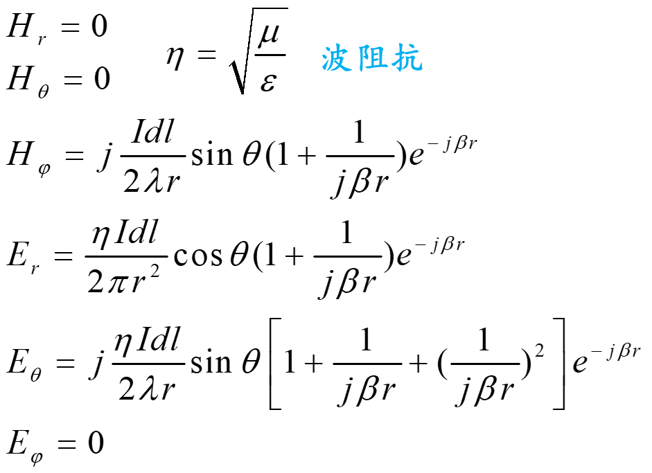 由此可得电流元的辐射场为: