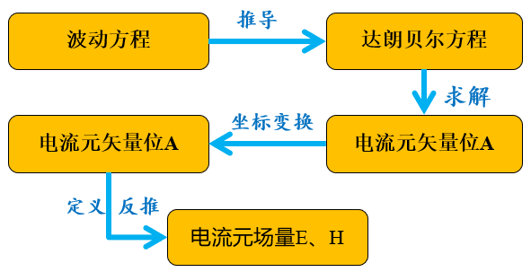 电流元的辐射场求解遵循以下一般过程:
