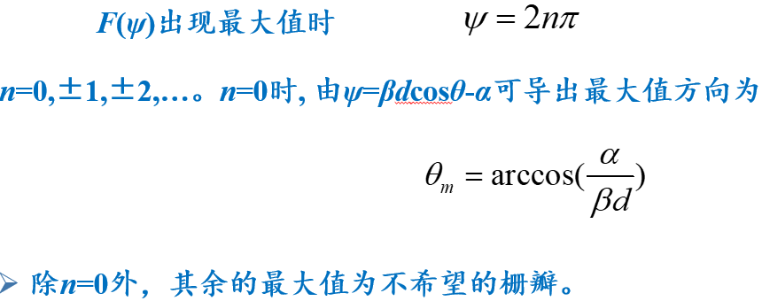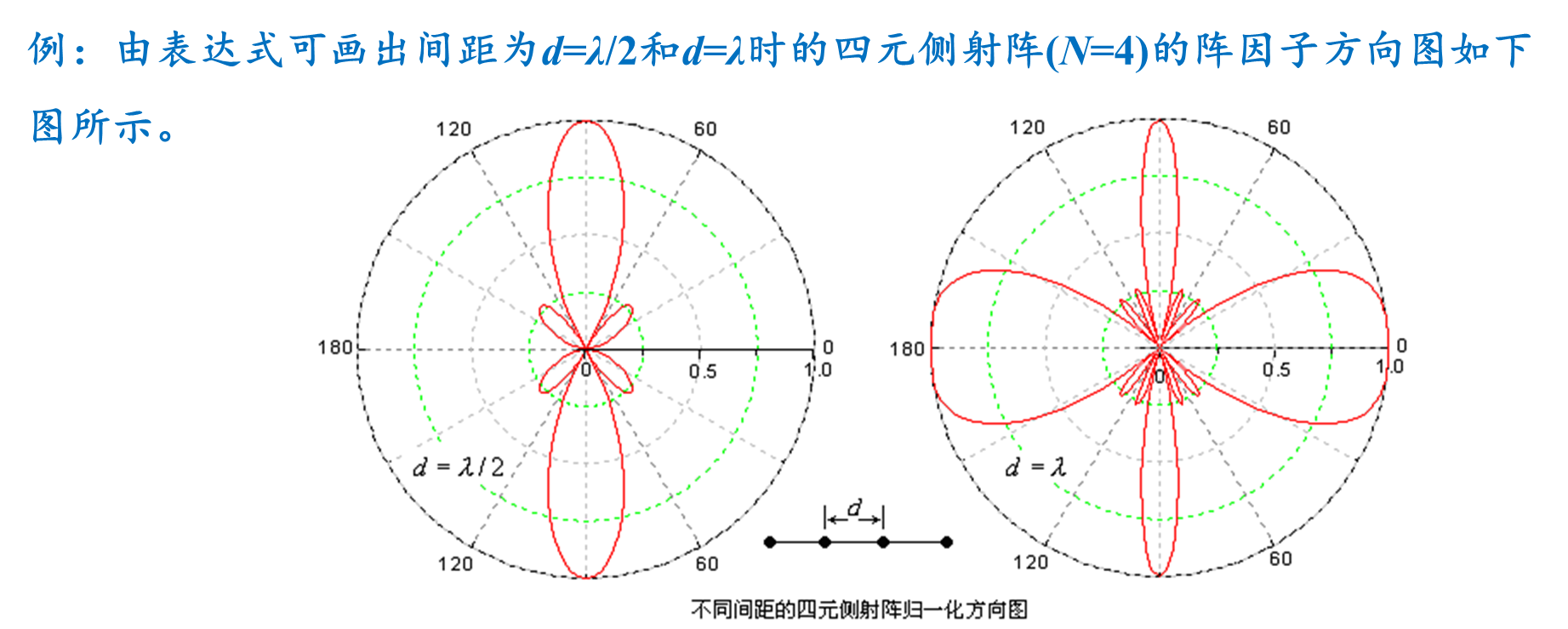 阵元间距小于半波长无栅瓣,大于等于半波长小于一倍波长有一个栅瓣,大于等于一倍波长小于2倍波长有两个栅瓣。