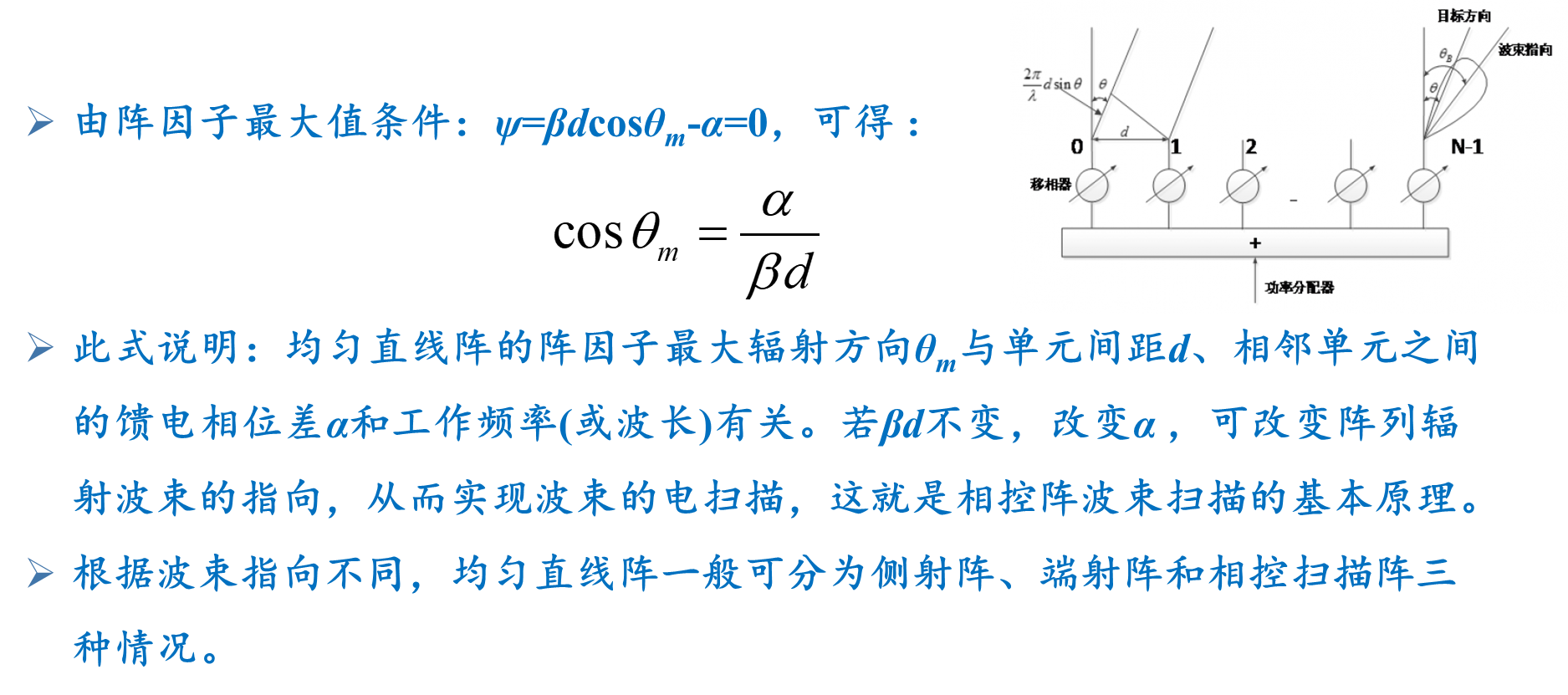 对于端射阵, θm =0, cosθ0n =1+ nλ/(Nd) 。