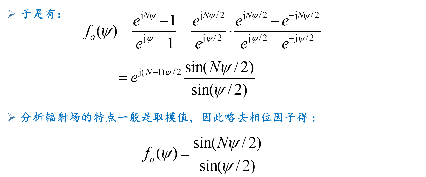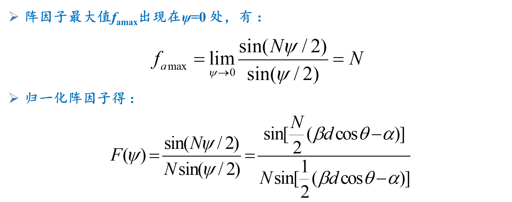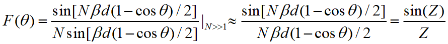 如果N很大,则方向图主瓣窄,sin(ψ/2)≈ψ/2,归一化方向图函数可写作